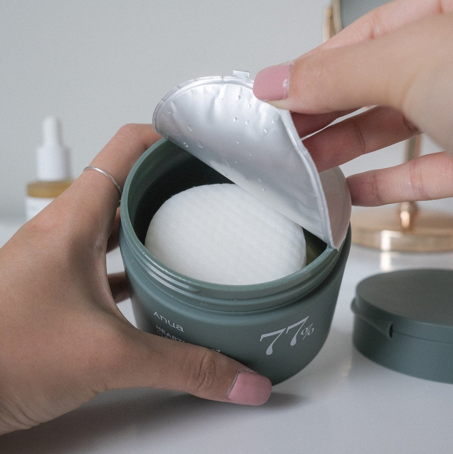 Enrichis à 77% d’extrait de feuilles de cœur, ces pads exfolient en douceur, éliminant les cellules mortes et les impuretés. Parfaits pour réduire les imperfections tout en respectant les peaux sensibles.
