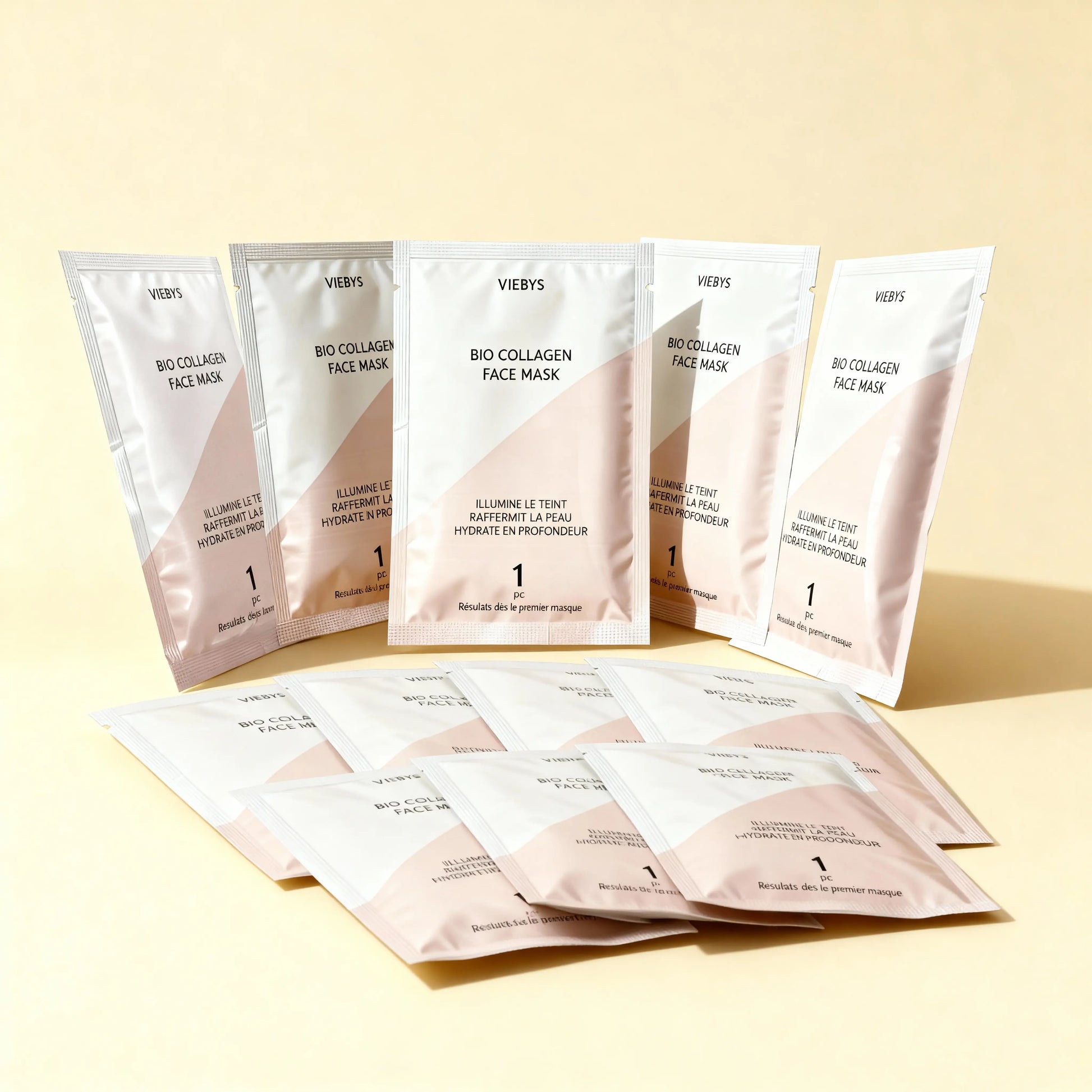 • Viebys Bio-Collagen Masks infuse their active ingredients deep into the skin for 3 to 4 hours, or all night long.