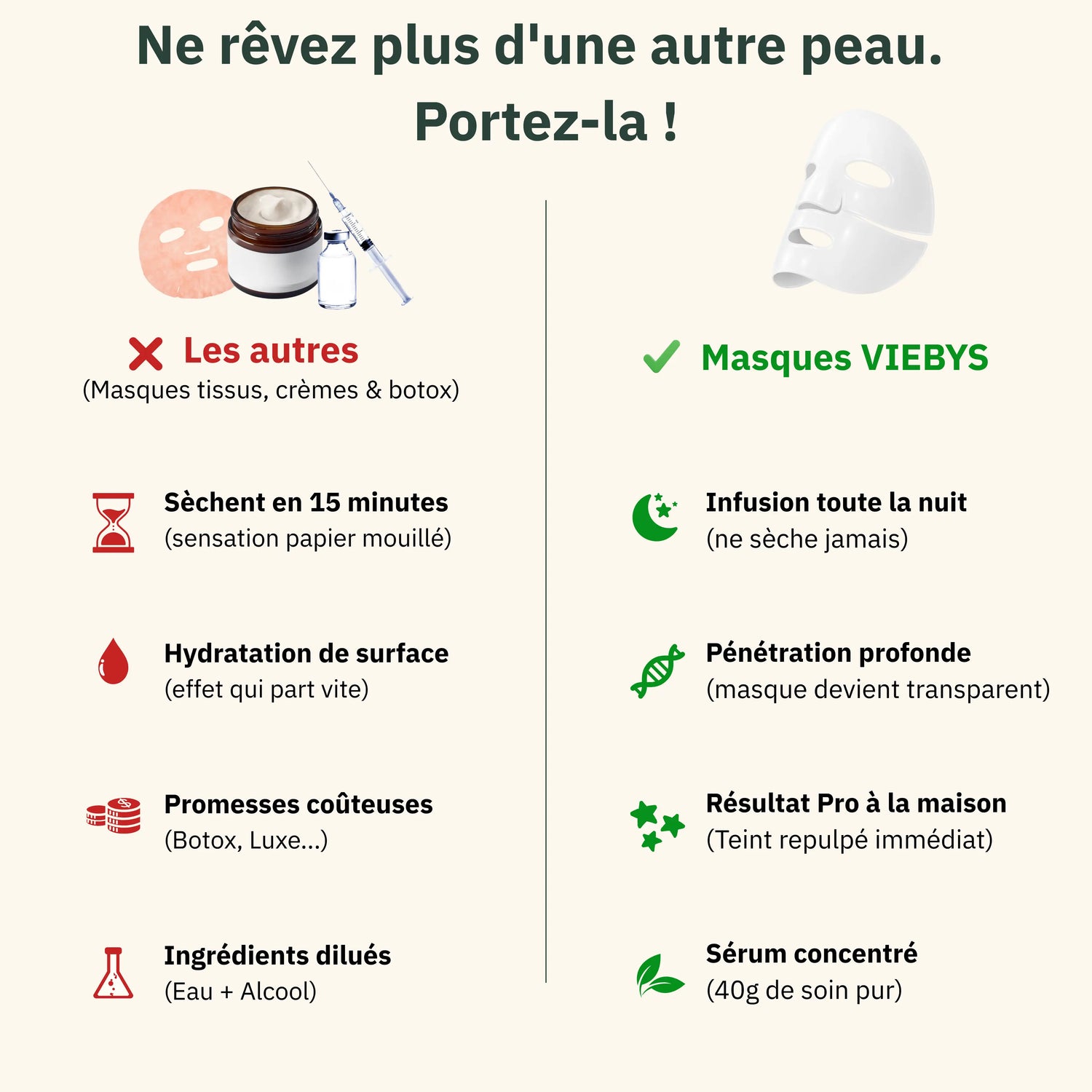 Do your creams end up on your pillow? Here, everything penetrates the skin. You pay for results.