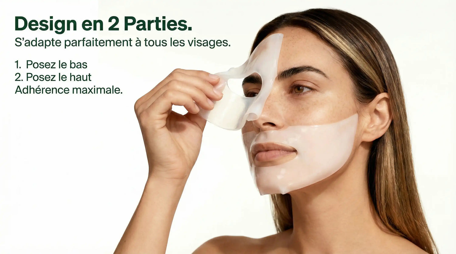 Le masque crée une occlusion parfaite. Il agit comme un bouclier hermétique qui empêche l'évaporation et FORCE les actifs de votre sérum à pénétrer profondément dans le derme toute la nuit.