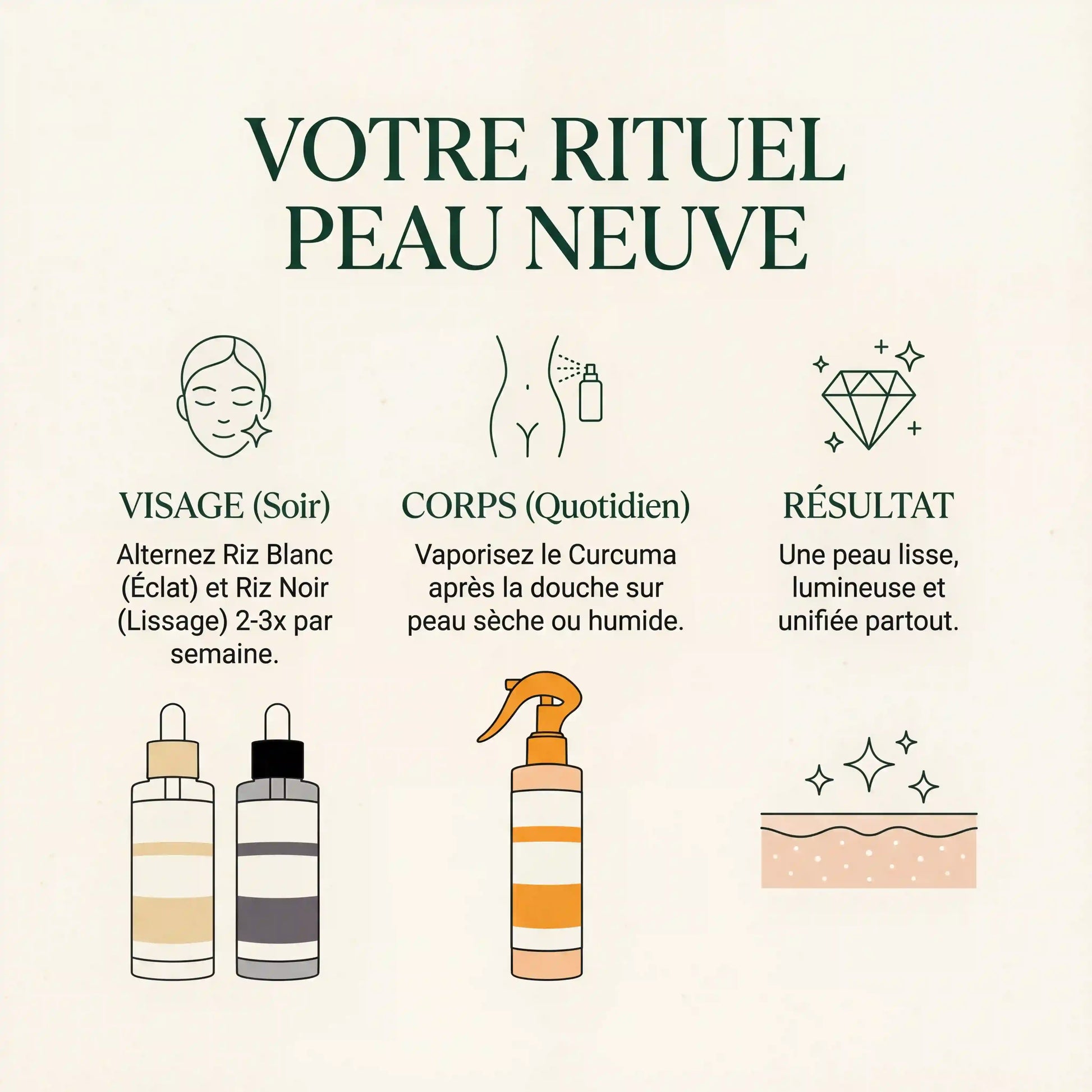 - Éviter rétinoïdes/exfoliants puissants la même nuit.